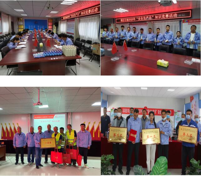 安全知识竞赛内容涵盖职业健康、法律法规、安全管理、安全技术、应急救援、个体防护、机器设备、临时用电及消防安全等多个方面。竞赛形式有抢答、笔试、微信平台线上答题等。参赛人员包括员工、劳务派遗人员及作业队农民工,对竞赛成绩优秀的组织单位、团队、个人给予奖牌、现金、生活用品、微信红包等奖励,激励、引导全员学习安全生产知识积极性,增强全员安全意识和安全素质,夯实安全基础保障,筑牢安全防线,降低施工生产风险。
