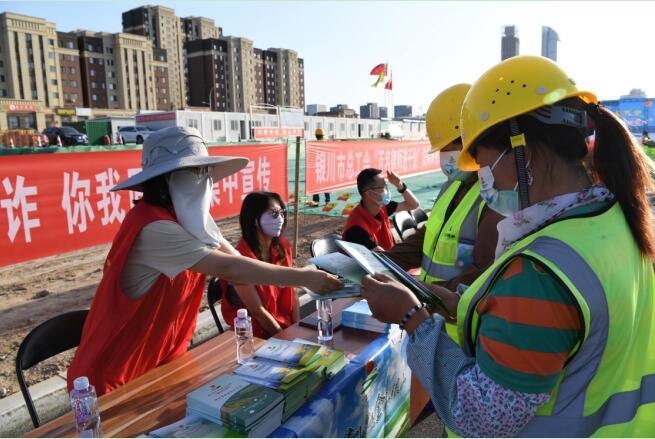 文艺演出前,银川市总工会为项目一线人员送上了慰问品,开展了送健康、送法律服务,现场发放宣传资料、提供法律咨询和医疗服务,为在场人员量测血压血糖,帮助一线人员了解身体状况,提高健康意识。