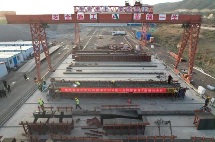 G566西吉县上堡至夏寨段公路AYX爱体育第一合同段圆满完成T梁架设任务