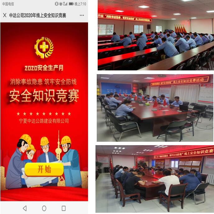 安全文化是安全生产的灵魂,安全教育和培训又是安全文化发展的动力。宁夏中达公路建筑有限公司结合“安康杯”竞赛活动及安全生产月活动安排,积极组织公司各级开展以“消除事故隐患,筑牢安全防线”为主题的线上、线下安全生产知识有奖竞赛活动,检验、督促各级安全教育培训工作落实到位。