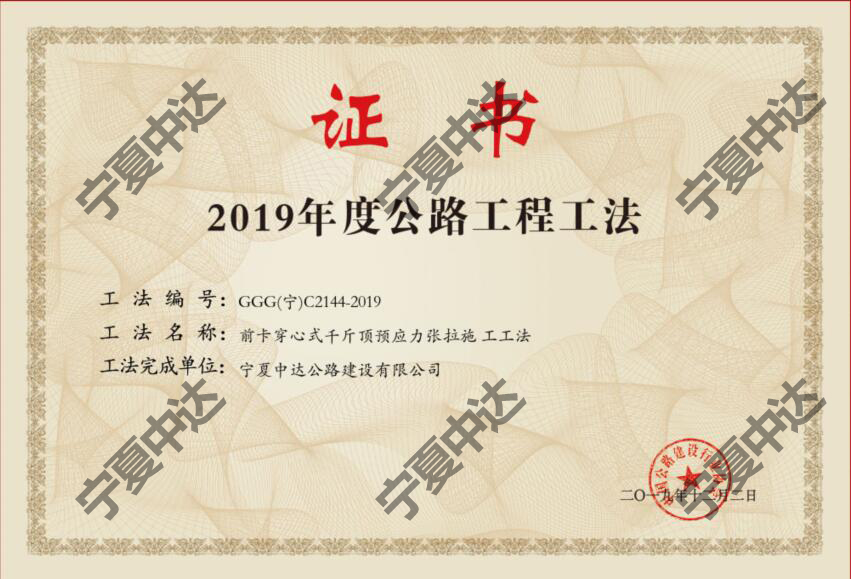 工法名称:前卡穿心式千斤顶预应力张拉施工工法
