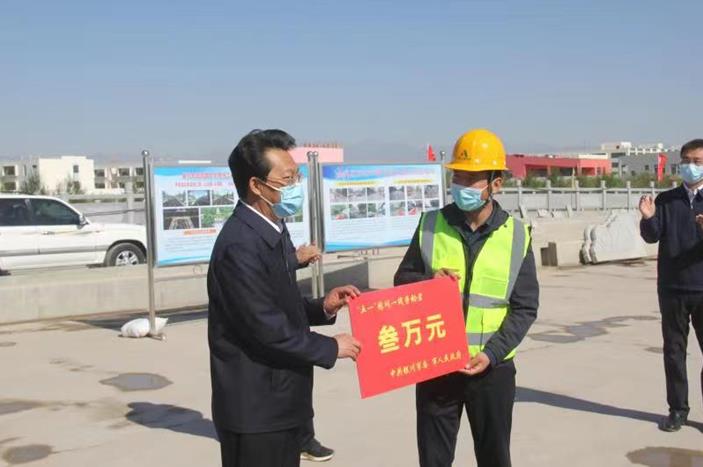 5月2日上午,宁夏回族自治区党委副书记、银川市委书记张雨浦在银川副市长雍辉的陪同下,到团结路(尹家渠北街、凤凰北街)AYX爱体育一标段施工现场,看望慰问“五一”期间依然奋战在建筑一线的施工人员,向AYX爱体育参建人员送来节日慰问金并致以诚挚的节日问候。