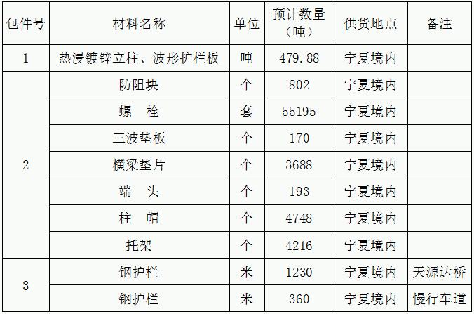 本次交通安全设施等原料采购共划分为3个包件,可参与报价的包件数3个,可成交包件数3个,具体内容如下表: