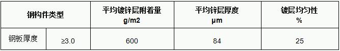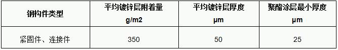 (6)螺栓、螺母、垫圈经热浸镀锌处理后应清理螺纹或作离心处理,防腐层的各层厚度应符合下表的要求: