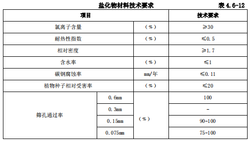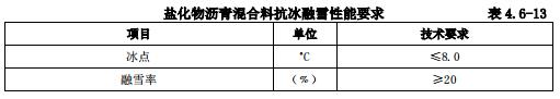 掺盐化物原料的沥青混合料路用性能指标不低于《公路沥青路面施工技术规范》JTG F40-2017 中的相关规定,盐化物原料高温动水冲刷性能要求如下:残留稳定度比≥80%;毛体积相对密度变化率≤1.2%。 盐化物添加比例一般不低于矿料质量的 5%,以实际目标配合比设计、技术服务确定为准。盐化物原料抗冰冻融雪性能要求见下表。