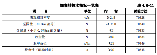 ①沥青面层的细集料应采用专用的细集料破碎机生产的机制砂。细集料应洁净、干燥、无风化、无杂质,并有适当的颗粒级配。细集料的洁净程度,以砂当量(适用于0~4.75mm)或亚甲蓝(适用于 0~2.36mm 或适用于 0~0.15mm)表示。细集料技术要求应符合下表的规定。