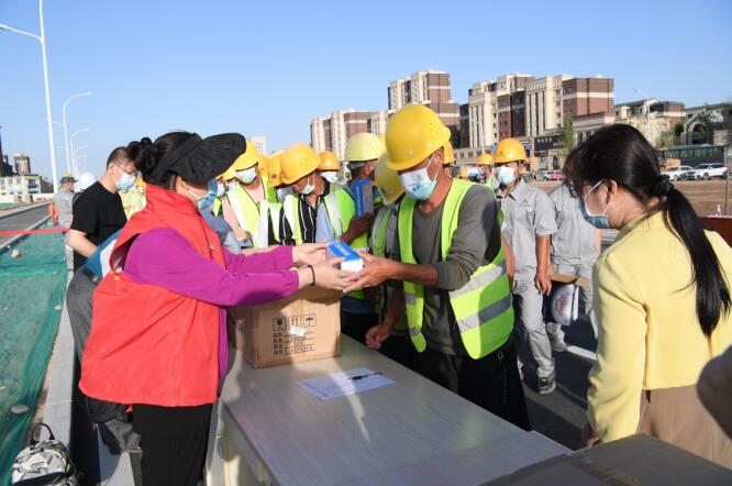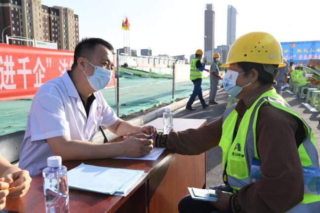文艺演出前,银川市总工会为项目一线人员送上了慰问品,开展了送健康、送法律服务,现场发放宣传资料、提供法律咨询和医疗服务,为在场人员量测血压血糖,帮助一线人员了解身体状况,提高健康意识。