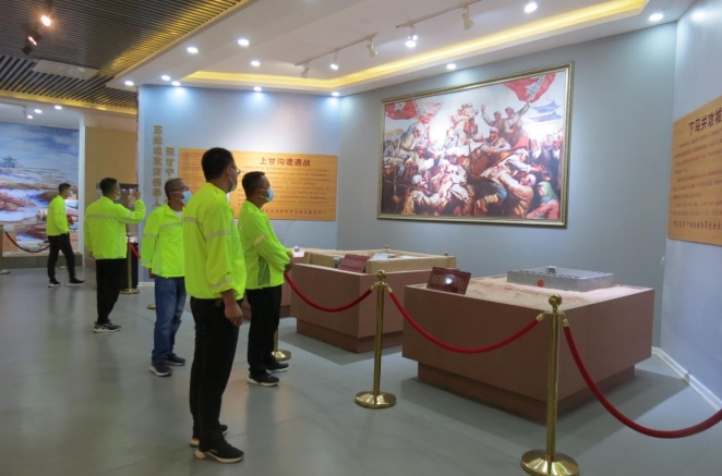 项目部全体职工来到同心县红军西征纪念馆,在陈列室里,集体参观了革命先烈照片、烈士遗物、破损的武器和用具,认真接受了红色革命传统教育和党性的洗礼,一幅幅反映历史的照片、一件件历经硝烟的史物、一段段感人至深的事迹无不深深地感染着每位职工。