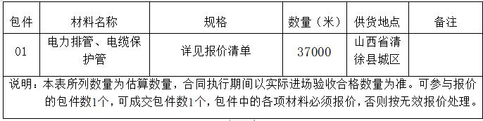 2.2采购内容:本次采购共划分为1个包件,采购内容为电力排管、电缆保护管原料,质量及规格要求符合采购方要求。具体内容如下表: