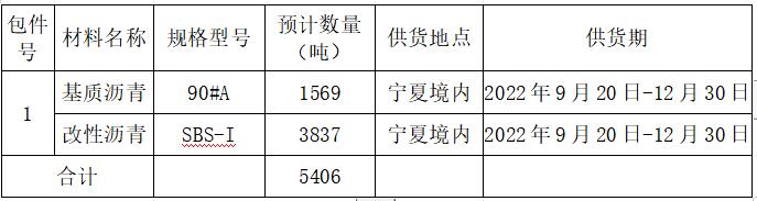 im体育官网根据所属项目AYX爱体育施工需要,拟采购沥青。本次采购要求沥青性能稳定,存储运输安全可靠,生产厂家提供质保及售后服务;供货地点为项目施工现场(宁夏境内)。